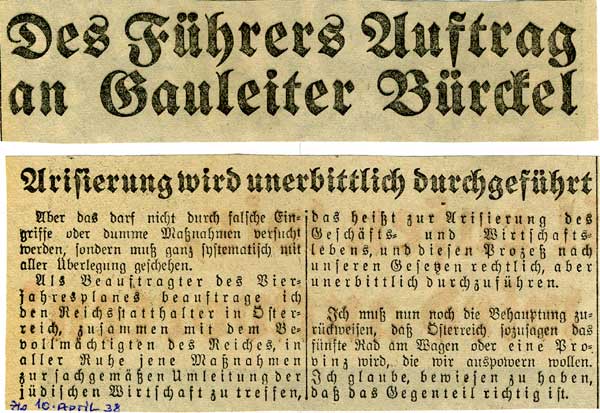 Die Beschlagnahme von jüdischem Besitz erfolgt meist schon unmittelbar nach dem so genannten Anschluss, auch wenn die deutschen Rassengesetze in Österreich erst am 24. Mai Geltung erlangen.
