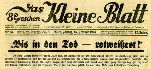 Rechts unten: "Bis in den Tod - rotweissrot" - "Das Kleine Blatt" vom 25. 02.1938