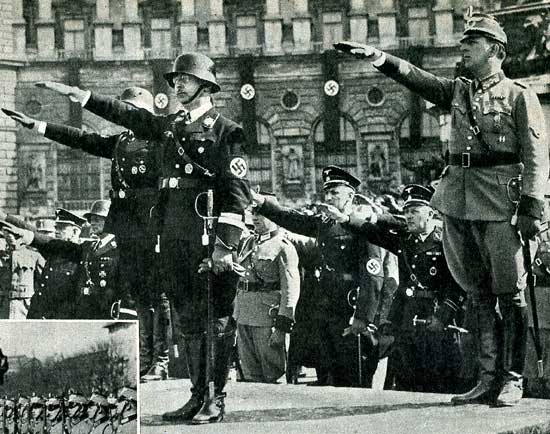 Fotos rechts: "Reichsführer SS Heinrich Himmler und Chef der Ordnungspolizei General Daluege." Aus der "Ostmark-Woche" vom 24. März 1938
